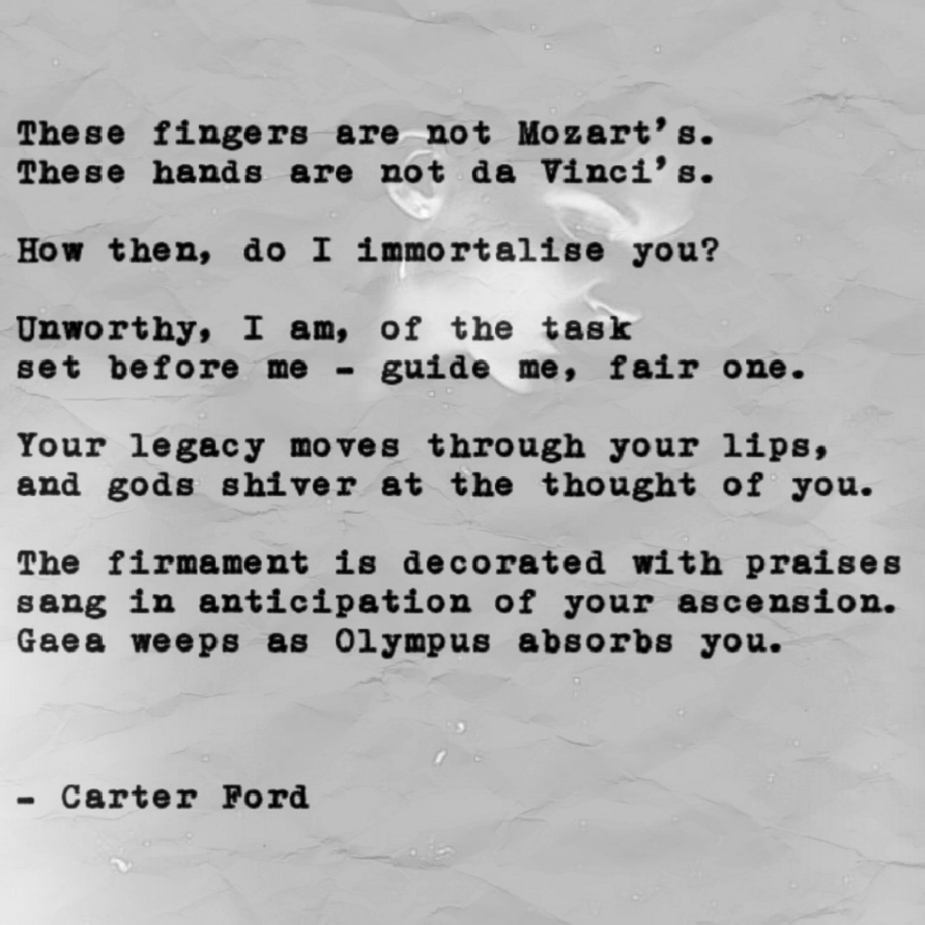 Oh but the poem is fully worthy for the standing ovation. šššš Beautifully penned dear Carter š¤š¤ LikeLiked by 1 person Reply